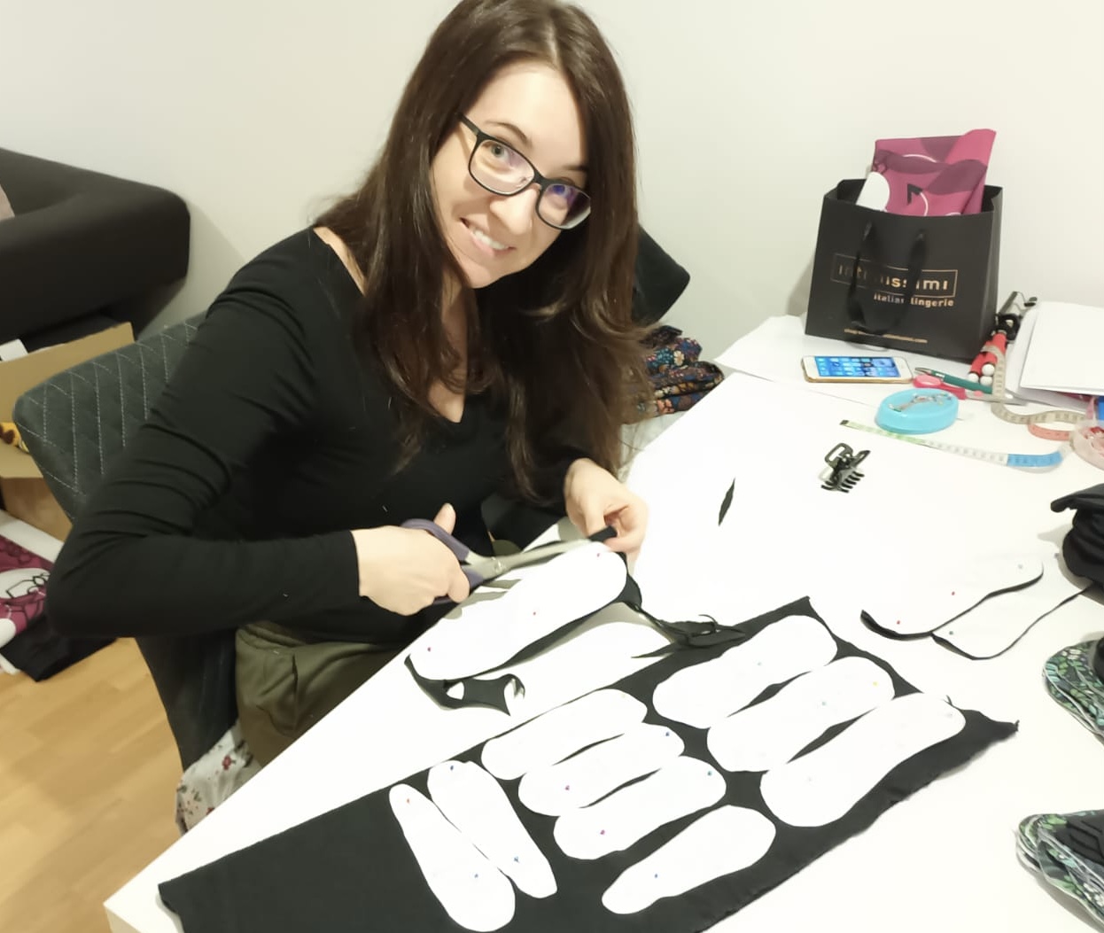 Das Schnittmuster wurde entworfen und die ersten Einlagen hüpften von der Nähmaschine.