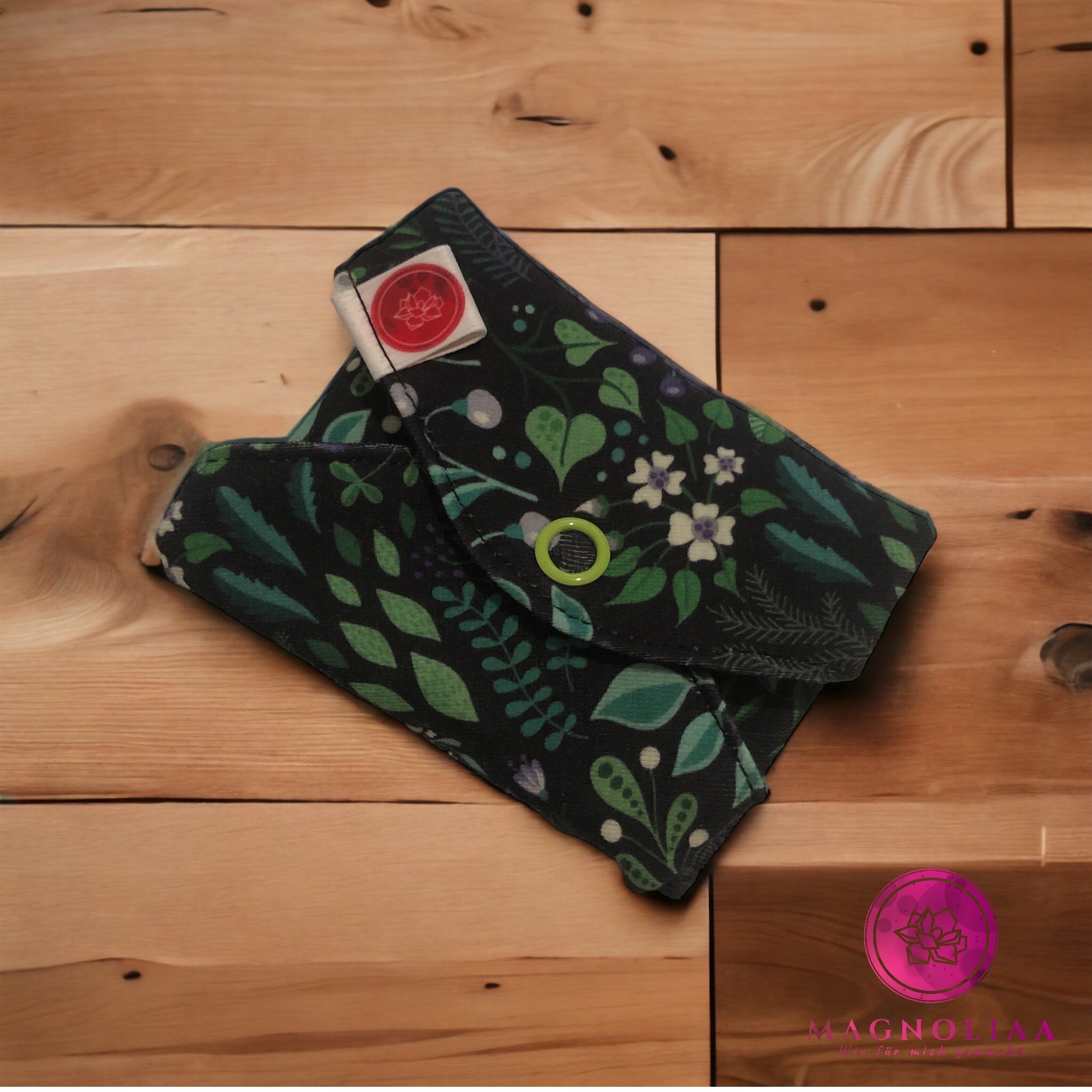 Nach Gebrauch falte sie wie ein kleines Päckchen zusammen – der Motivstoff soll dann außen sein- und verschließe die Einlage mit dem Druckknopf wie am Bild.