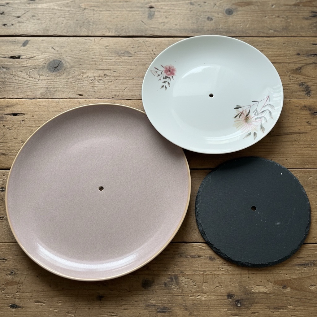 Beachtet das jedes Etagere per Hand gebohrt wird, daher sind abplatzenden beim Bohren (nicht sichtbar durch die Gewindestangen) möglich und beeinflussen die Qualität des Etageres nicht.