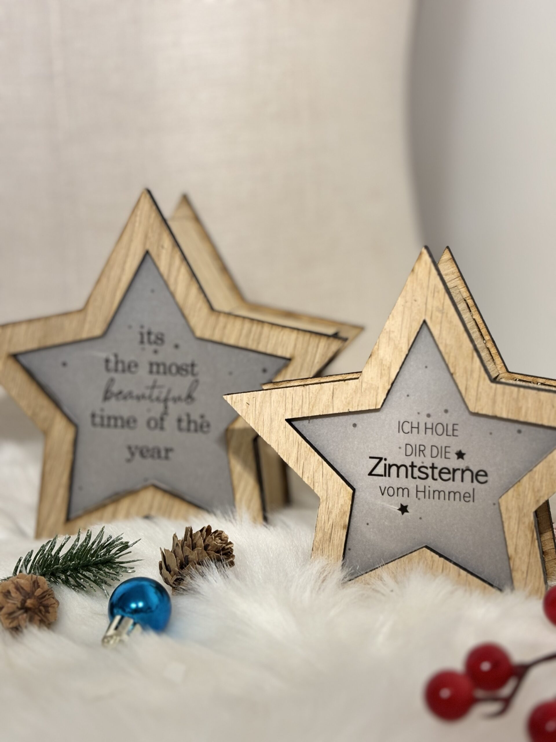 Wunderschöne Leuchtsterne mit weihnachtlichem Schriftdesign.