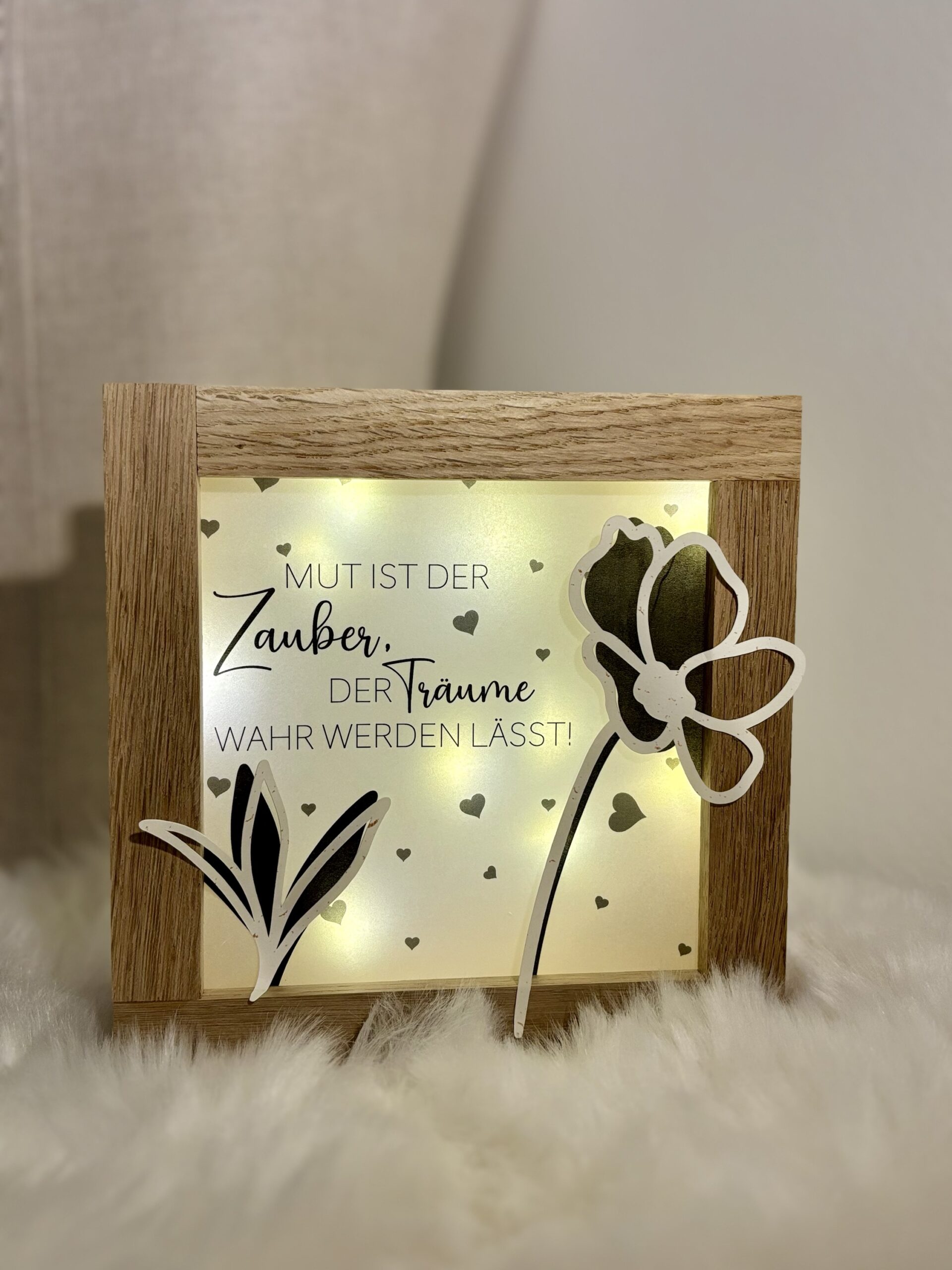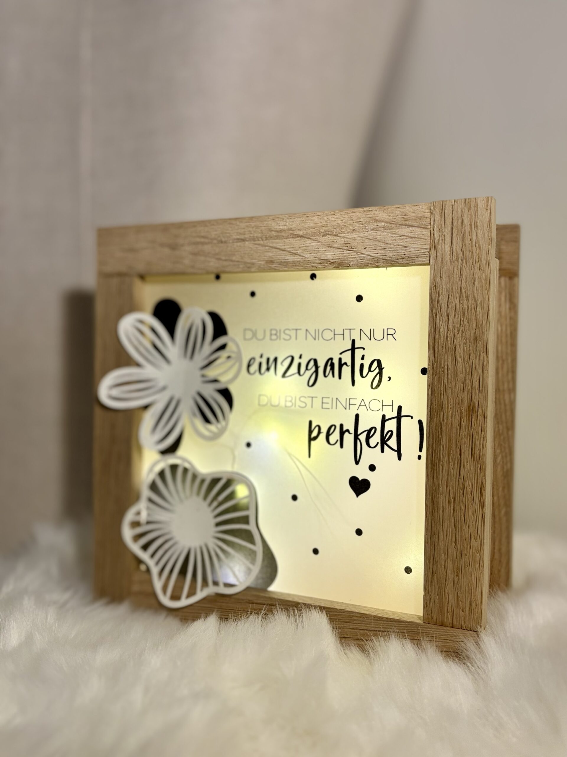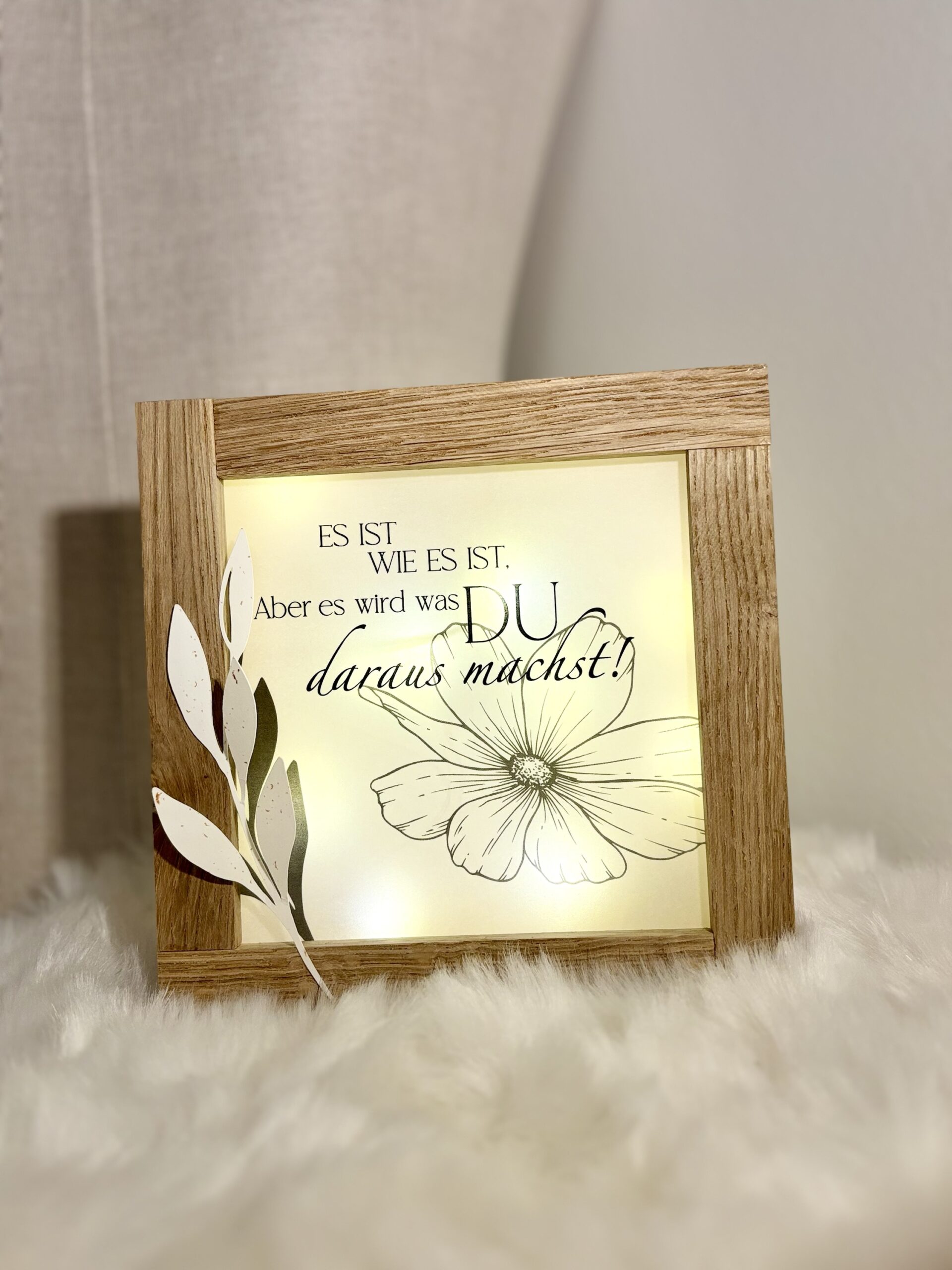 Wunderschöne Lichtbox mit Positiv Vibes.