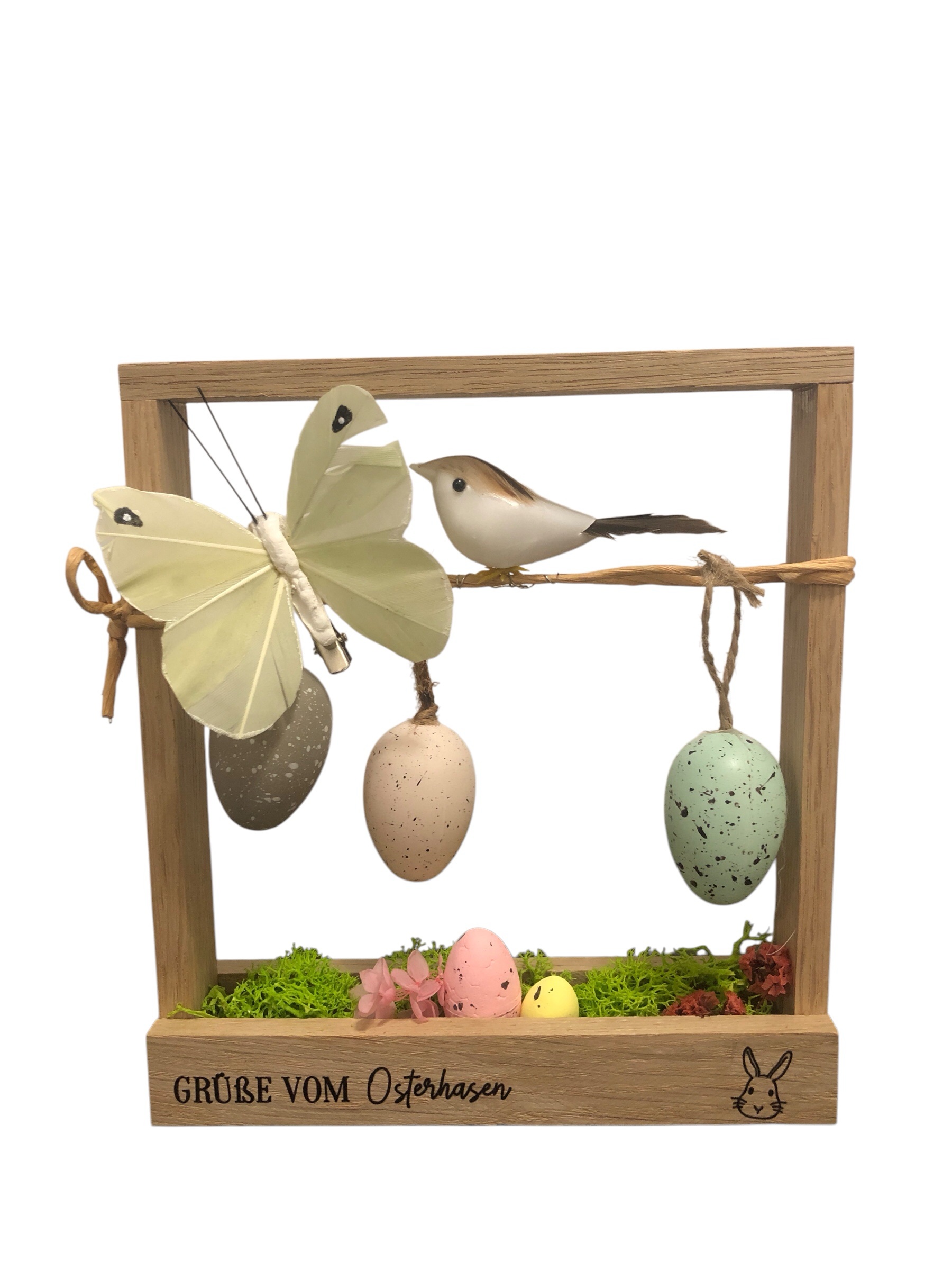 Osterdekoration aus Holz. Lieblich dekoriert.